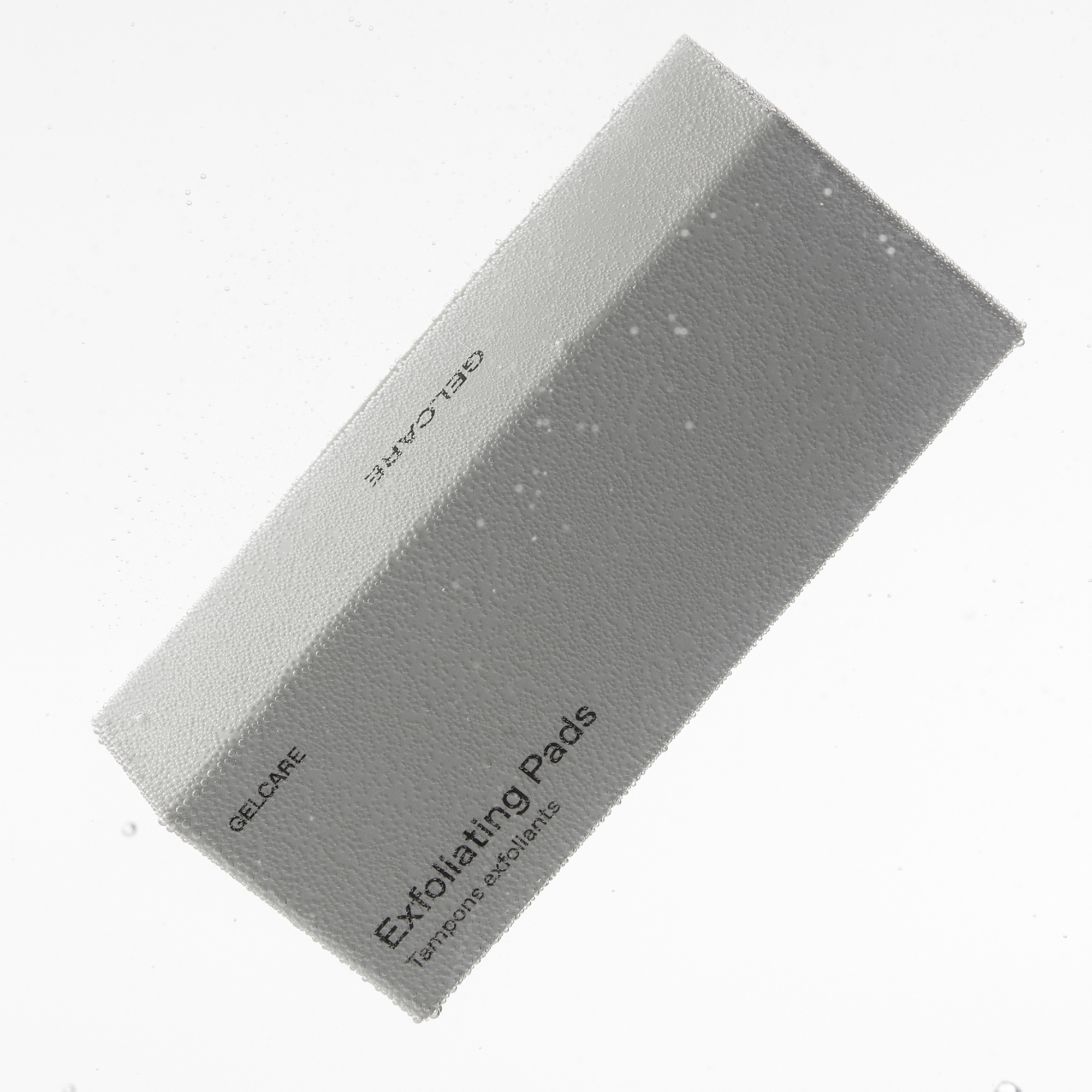 - Décoller un Tampon exfoliant Gelcare et placez-le sur le côté uni du manche à pédicure Gelcare.