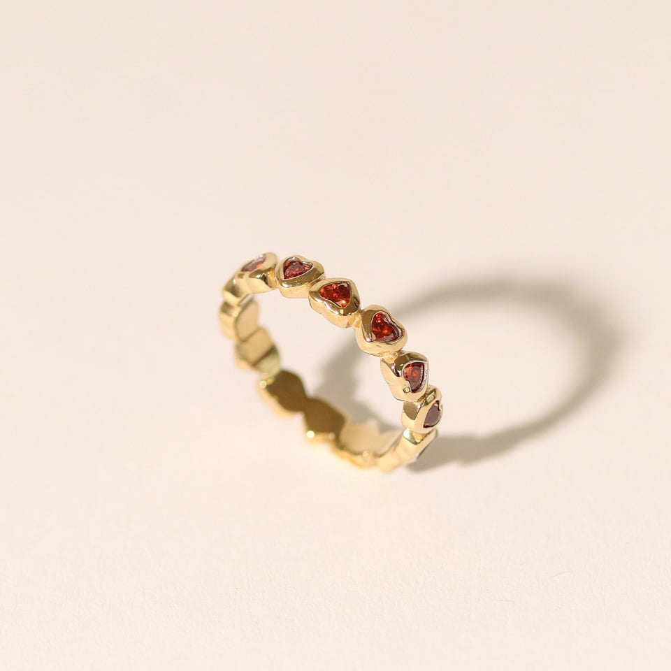 - 14 zircons couleur rubis en forme de coeurs